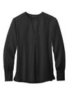 • The soft satin fabric of this versatile blouse has a subtle sheen, lending an elegant look to any outfit. Designed for an easy fit to keep you feeling confident and comfortable. • 4.1-ounce, 100% polyester satin • Anti-static finish • Open v-neck popover • Wide box pleat at back yoke • Gathers at shoulders and cuffs • Three self-fabric-covered buttons at cuffs • Side vents